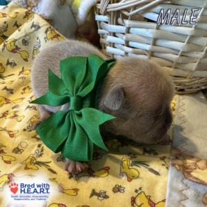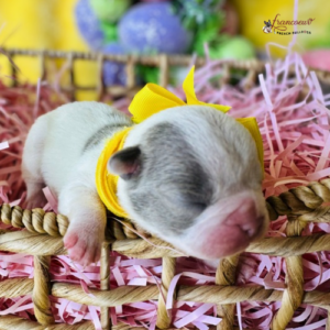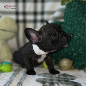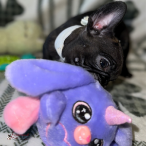Prior to being sent home, all of our French Bulldog puppies have received their age appropriate vaccines, have been de-wormed at least twice, and have received socialization.