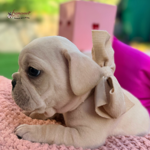 Knox is our stunning white‑cream Frenchie and the smallest of the boys in his litter — but don’t let his size fool you. This little powerhouse is all heart, grit, and resilience. From day one, Knox has shown a spirit that outshines his tiny frame, meeting every milestone with determination and a spark all his own.
